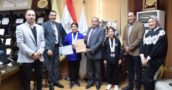 كرم الدكتور منصور حسن رئيس جامعة بني سويف، اليوم الأحد، لاعبة منتخب مصر أسيل أحمد جمال الحاصلة على ميدالية فضية تحت 11 سنة وبرونزية تحت 13 سنة، واللاعبة شادية أحمد جمال الحاصلة على ميدالية ذهبية تحت 13 سنة وبرونزية تحت 15 سنة، في البطولة العربية للبراعم في رياضة المبارزة والتي أقيمت في الفترة ما بين 14 - 18 يناير الماضي بمملكة البحرين.
