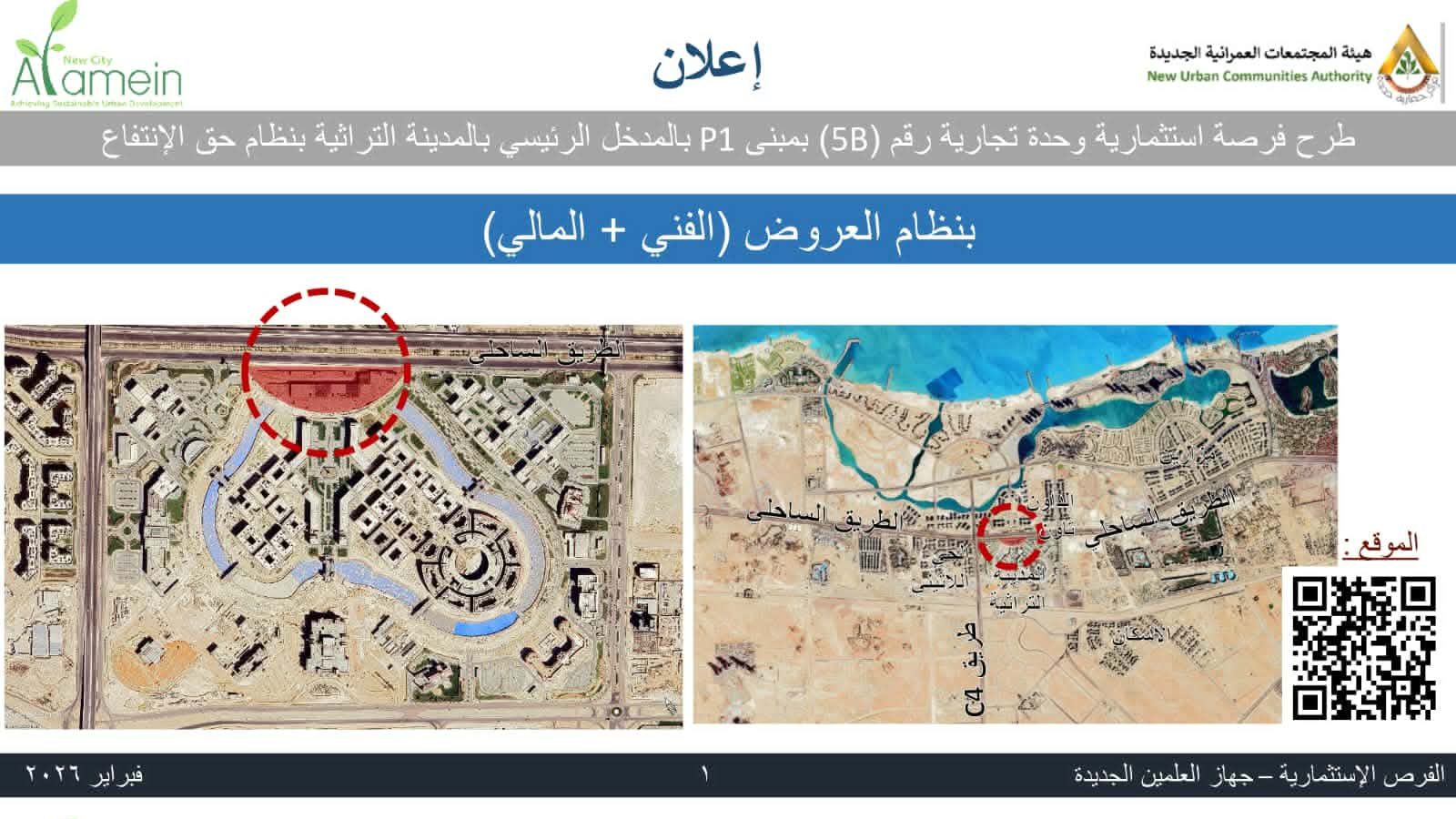 أعلن الدكتور المهندس محمد خلف الله، رئيس جهاز مدينة العلمين الجديدة والمشرف على جهاز القرى السياحية، عن طرح أول فرص استثمارية بالمدينة التراثية بنظام "حق الانتفاع"، وذلك بنظام العروض "الفنية والمالية"، مؤكدًا أن الطرح يشمل محالّ تجارية بمبنى P1 بالمدخل الرئيس للمدينة التراثية، في إطار تعزيز الشراكة مع القطاع الخاص لتطوير الأنشطة السياحية والخدمية واللوجستية.