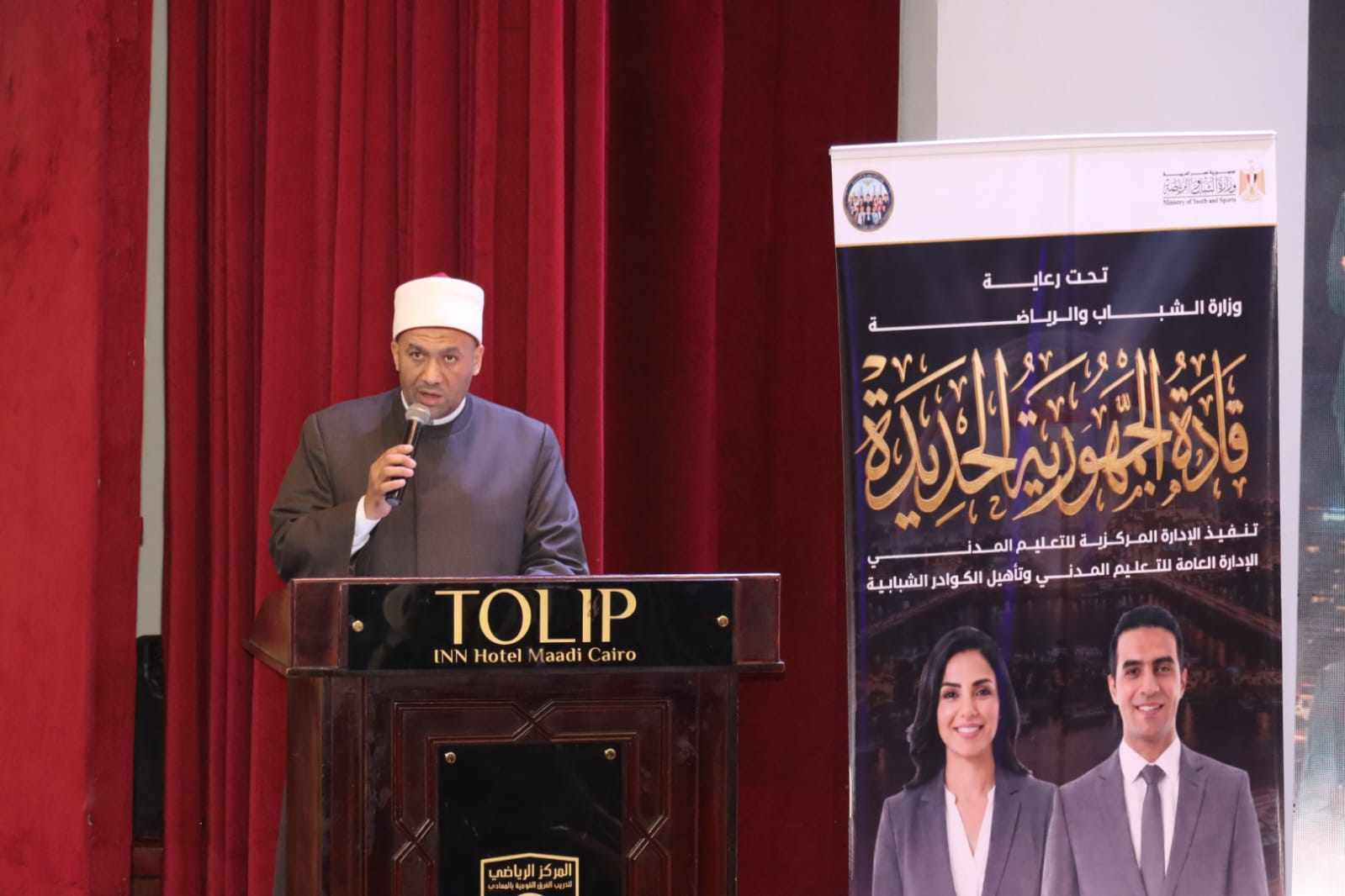 نظّمت وزارة الشباب والرياضة اللقاء السادس من البرنامج القومي لإعداد وتأهيل الشباب للقيادة، ضمن مسار القيادات الشبابية بالاستراتيجية الوطنية للشباب والرياضة، تحت شعار "قادة الجمهورية الجديدة"، وذلك بالتعاون مع وزارتي الدفاع والأوقاف، عُقد اللقاء يوم الثلاثاء، بالمركز الأوليمبي بالمعادي، بمشاركة قيادات شبابية من محافظات القاهرة والجيزة والقليوبية والفيوم والإسكندرية.