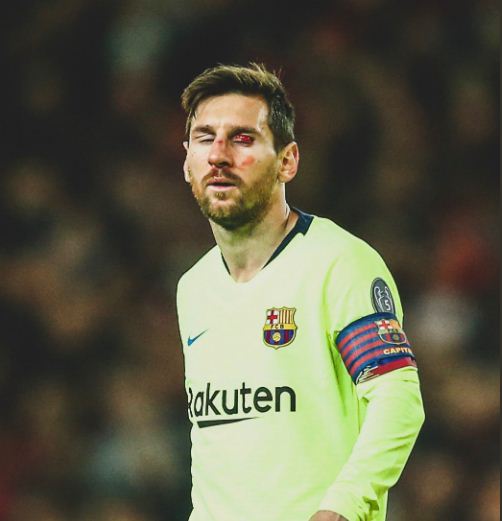 ميسي تعرض لإصابة قوية إثر تدخل عنيف من كريس سمولينج مدافع مان يونايتد، والتي على إثرها تعرض لنزيف دموي في أنفه، في المباراة التي جمعتهما بملعب "أولد ترافورد" في ذهاب دور ربع نهائي دوري أبطال أوروبا، والتي فاز فيها برشلونة بهدف نظيف.