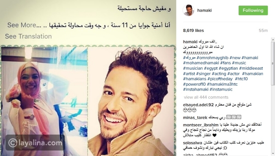 تفاعل متابعو الفتاة كما جمهور محمد حماقي مع أمنية كهرمانة فما كان من النجم المصري إلا أن أعلن اليوم على صفحته على انستجرام استجابته لأمنتيها بنشر طلبها مرفق بعبارة: "ألف مبروك.. ان شاء الله انا اول الحاضرين مبروووووووووووك".