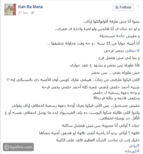 الفتاة التي تدعى Kah Ra Mana كتبت في تدوينة تمنت أن تصل للنجم محمد حماقي أمنتيها حيث قالت: