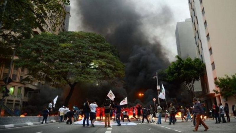وقطع المتظاهرون الطرق الرئيسية المؤدية إلى ساو باولو، أكبر مدن البرازيل، متسببين في اختناقات مرورية ضخمة خلال الصباح.