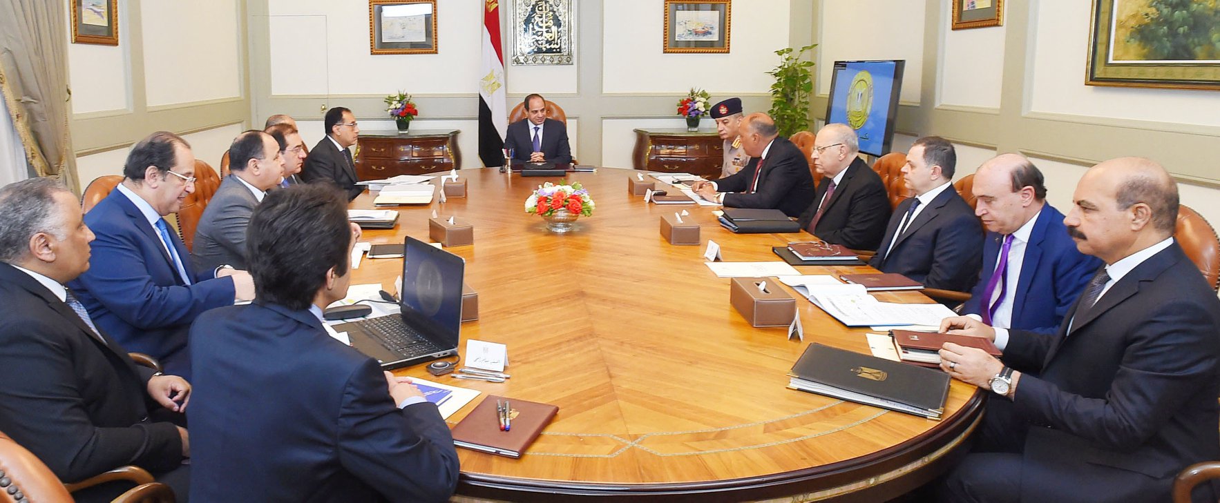 عقد الرئيس عبد الفتاح السيسي، اجتماعًا مع مستشاره للتخطيط العمراني ورئيس مجلس الوزراء، ومحافظ البنك المركزي، ووزراء الدفاع، والخارجية، والبترول والثروة المعدنية، والعدل، والتموين والتجارة الداخلية، والمالية، والداخلية، ورؤساء المخابرات العامة، وهيئة قناة السويس، وهيئة الرقابة الإدارية.