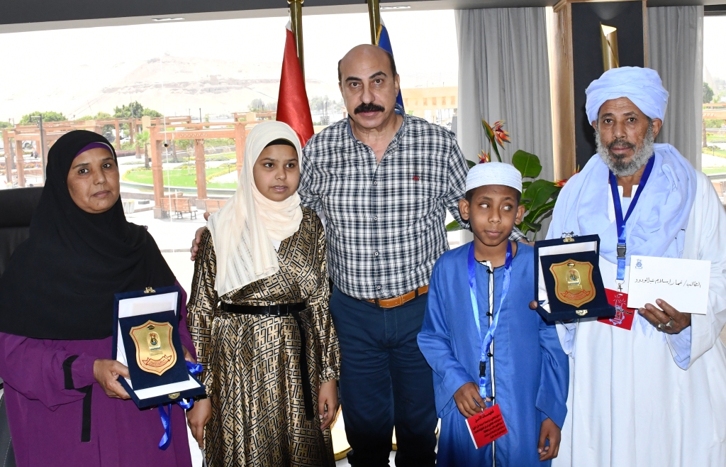 كرم اللواء أشرف عطية، محافظ أسوان، اليوم، حفظة القرآن الكريم من المكفوفين وهما الطالبة ابتسام محمد فوزي، 14 سنة، بالصف الثالث الإعدادي، والطالب عمار إسلام عبد الودود، 11 سنة، بالصف الأول الإعدادي، بمركز إدفو، حيث شمل التكريم إهداء درع المحافظة لهما.