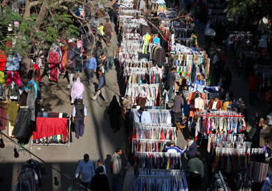 أشهر الماركات العالمية مفروشة على جانبى الطريق بالمدخل الرئيسى لوكالة البلح، فى وسط القاهرة، تخفيضات وعروض كبيرة ازدادت وتنوعت مع اقتراب عيد الفطر ودخول فصل الصيف الذى تكثر فيه الزيجات.
