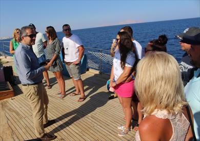 والتقى وزير السياحة والأثار خلال جولته، بعدد من السائحين الأوكرانيين والبيلاروسيين الذين كانوا متواجدين على متن المركب، لمعرفة مدى رضائهم عن إجراءات الوقاية من فيروس كورونا المتبعة على المركب، ومدى الالتزام بتطبيق الاجراءات الوقائية.