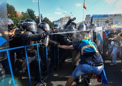 استخدمت قوات الأمن الرومانية، أمس الجمعة، خراطيم المياه وقنابل الغاز المسيلة للدموع لتفريق عشرات آلاف المتظاهرين، قسم منهم مغتربون، كانوا يحتجون على الحكومة اليسارية المتهمة بالفساد.