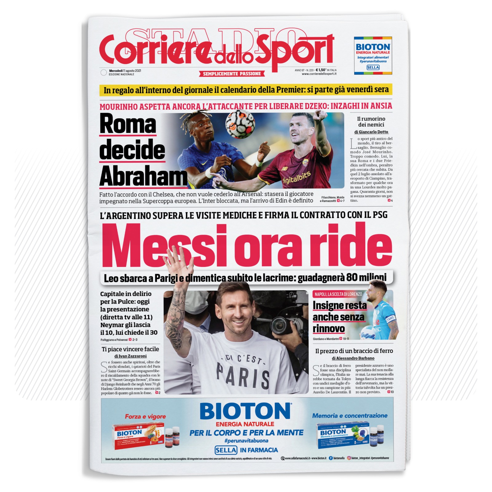 في الصحافة الإيطالية، علّقت في جزء من غلاف صفحتها "حسنًا يا باريس.. هو ميسي"، بينما عنونت صحيفة كورييري ديلو سبورت :"ميسي يهبط في باريس وينسى على الفور دموعه"، في إشارة لبكاءه خلال المؤتمر الصحفي الوداعي لبرشلونة.
