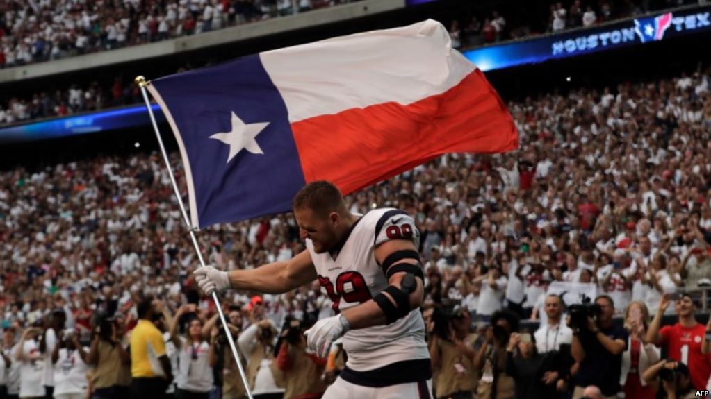 تلقى جيه جيه وات، لاعب فريق هيوستن تكساس لرياضة كرة القدم الأمريكية ترحيبًا حارًا من المشجعين، أمس، لدى خروجه إلى ملعب الفريق، بعدما جمع تبرعات بقيمة 31 مليون دولار لجهود الإغاثة من الإعصار هارفى الذى ضرب ولاية تكساس قبل أسبوعين.