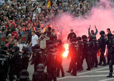 بدأت الشرطة في مدينة «هاله» بشرق ألمانيا، 10 تحقيقات على الأقل، بعد مظاهرة يوم الاثنين استخدم فيها المحتجون الرموز والشعارات النازية.