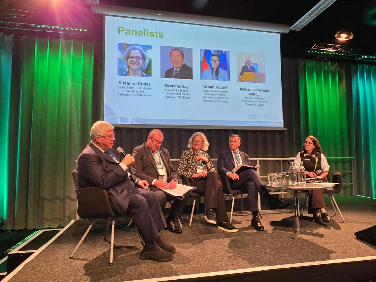 وشارك الوزير في حلقة نقاشية رفيعة المستوى بعنوان “السياسات العامة لتدويل التعليم العالي: رؤى الوزراء”، والتي شارك فيها أيضًا سوزانة كونتسة رئيسة الوحدة B1 للتعليم العالي بالمفوضية الأوروبية، وغرايم داي وزير التعليم العالي والتعليم المستمر بأسكتلندا، أوربان كودريتش كاتب الدولة بوزارة التعليم العالي والعلوم والابتكار بسلوفينيا.