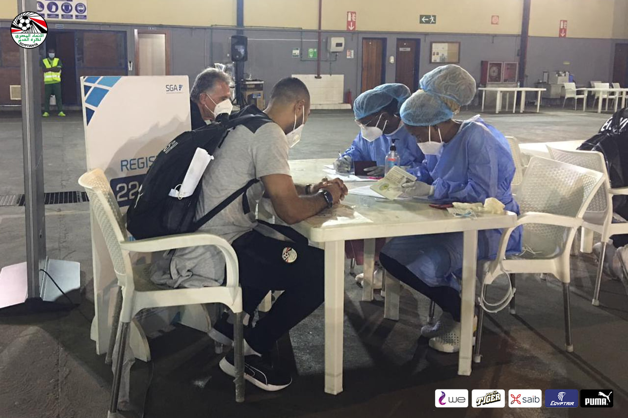 وعقب وصول البعثة إلى انجولا خضع جميع أفراد المنتخب والجهاز الفني والإداري لمسحة طبية وفق إجراءات السلامة المتبعة.