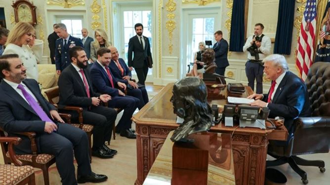ومساء الاثنين، عقد ترامب لقاء مغلقا مع الشرع في البيت الأبيض بالعاصمة واشنطن التي وصلها الرئيس السوري، فجر الأحد، قادما من البرازيل حيث شارك في الجلسات الافتتاحية لقمة المناخ التي انطلقت الخميس.