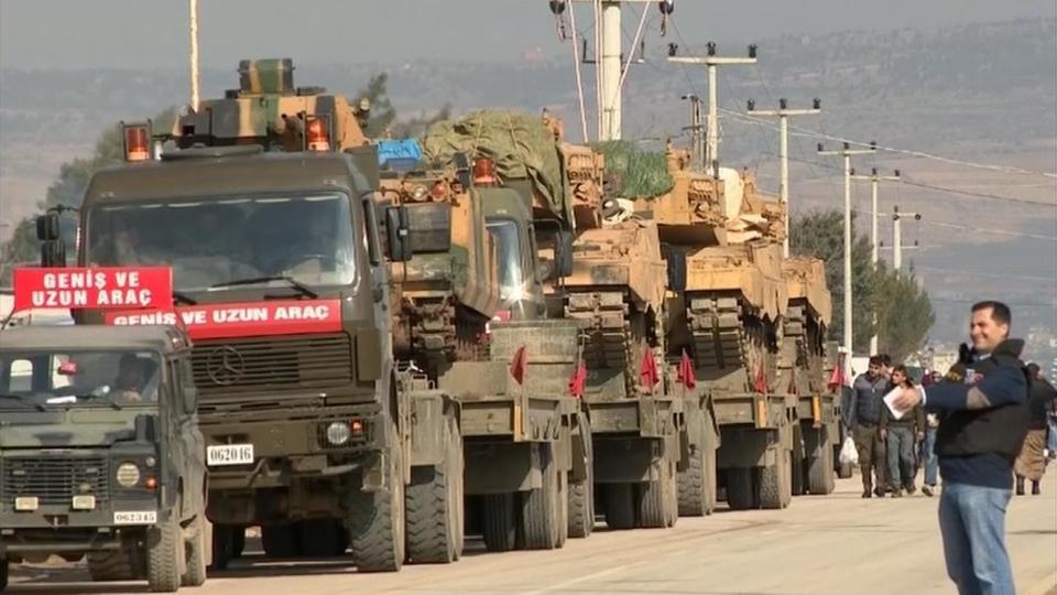 ذكرت وكالة دمير أورين التركية أن تركيا حملت يوم السبت دبابات ومركبات مدرعة على ظهر شاحنات وأرسلت هذه القافلة إلى إقليم خطاي التركي على الحدود مع سوريا.