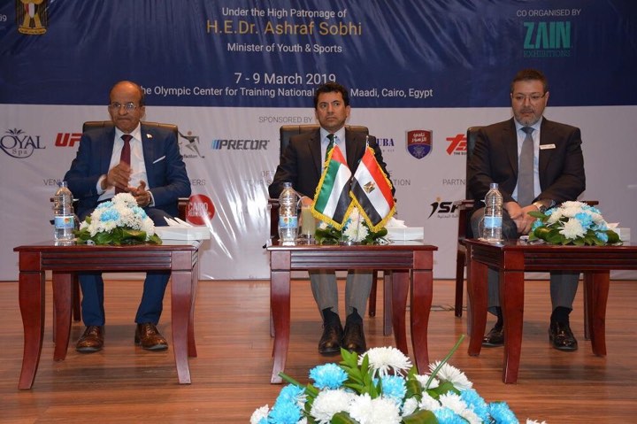 شهد أشرف صبحي وزير الشباب والرياضة ،مساء اليوم الثلاثاء، فعاليات المؤتمر الصحفي للإعلان عن تفاصيل استضافة مصر للمعرض الدولى الخامس للرياضة واللياقة البدنية والصحية ISF North Africaخلال الفترة ٧-٩ مارس المقبل بالمركز الأوليمبي لتدريب الفرق القومية بالمعادي تحت رعاية وزير الشباب والرياضة.