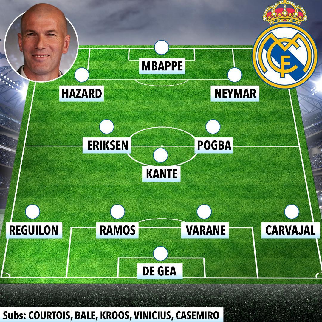 نشرت صحيفة «ذا صن» البريطانية التشكيل الجديد لفريق ريال مدريد المتوقعة بعد عودة الفرنسي زين الدين زيدان لقيادة النادي الملكي والذي سيبدأ في تكوين فريق خيالي بولايته الثانية.