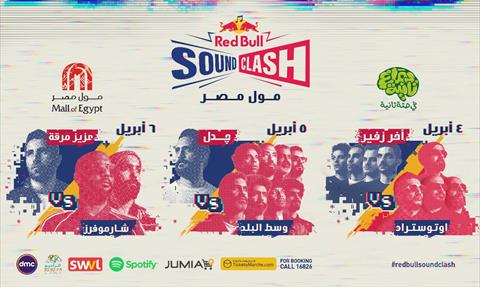 تستعد شركة "ريدبل" لإقامة حفل جماهيري ضخم تحت اسم "ساوند كلاش" للمرة الرابعة في مصر، بعد غياب عامين، ولكن هذه المرة بشكل مختلف عن سابقتها، حيث يتضمن 3 حفلات متتالية لـ6 "باندات" عربية بدلًا من حفلة واحدة كل عامين، وذلك بدءًا من الخميس 4 أبريل المقبل وتستمر حتى يوم 6 من نفس الشهر، بمول مصر فى مدينة السادس من أكتوبر.