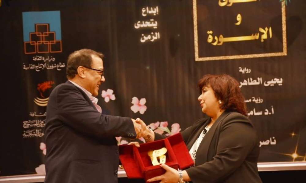 شهدت الدكتورة إيناس عبدالدايم، وزيرة الثقافة، حفل تكريم أبطال العرض المسرحى «الطوق والإسورة» الذى نظمه المركز القومى للمسرح والموسيقى والفنون الشعبية التابع لقطاع شئون الإنتاج الثقافى برئاسة المخرج خالد جلال، أمس الأول الاثنين، بالمسرح القومى، وذلك بمناسبة فوز العرض لجائزة الشيخ سلطان بن محمد القاسمى، فى الدورة الحادية عشرة لمهرجان المسرح العربى، الذى استضافته مصر فى الفترة من 10 حتى 16 يناير الماضى.