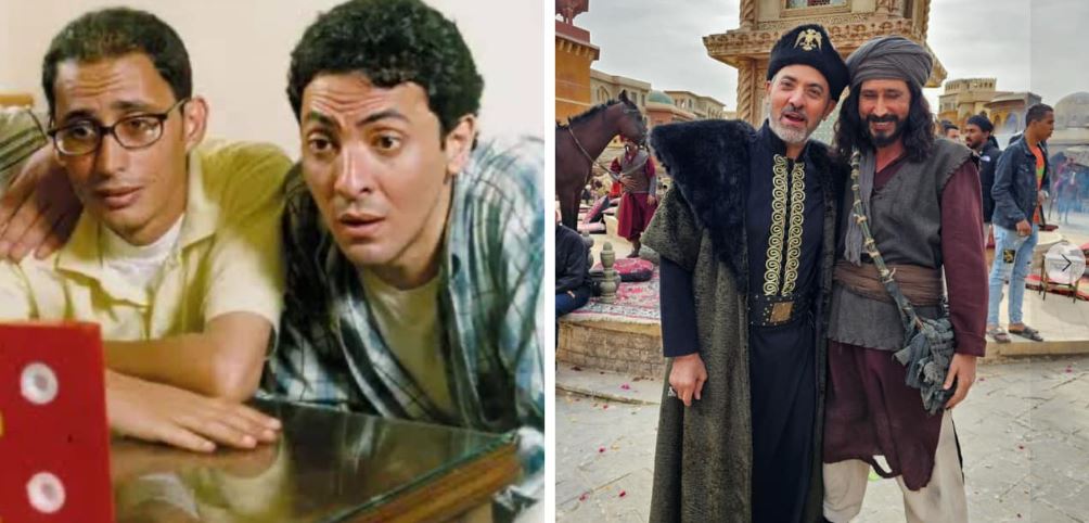مازح الفنان فتحي عبدالوهاب، الجمهور، بصورتين له مع الفنان أحمد عيد، الأولى من فيلم «فيلم ثقافي» والثانية من كواليس مسلسل «الحشاشين»، معلقا: «ده شقاوة قديمة ده»