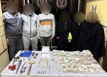 بالانتقال والفحص أمكن ضبط المذكورتان "لهما معلومات جنائية" وبحوزتهما (مشغولات ذهبية، فاتورة مقلدة منسوب صدورها لأحد محال الصاغة). وبمواجهتهما أقرا بقيامهما بتكوين تشكيل عصابى بالإشتراك مع 3 أشخاص وسيدة "لـ 3 منهم معلومات جنائية" تخصص نشاطه الإجرامى فى النصب والإحتيال على المواطنين ومحلات الصاغة من خلال بيع المصوغات الذهبية المصنعة بعيار أقل بعد إعادة دمغها بعيار أعلى عن طريق أحدهم، أمكن ضبطهم وبحوزتهم (كمية من المشغولات الذهبية غير مطابقة للمواصفات ومجموعة من الفواتير المقلدة، أقلام الدمغة المقلدة "المستخدمة فى إعادة دمغ المصوغات").