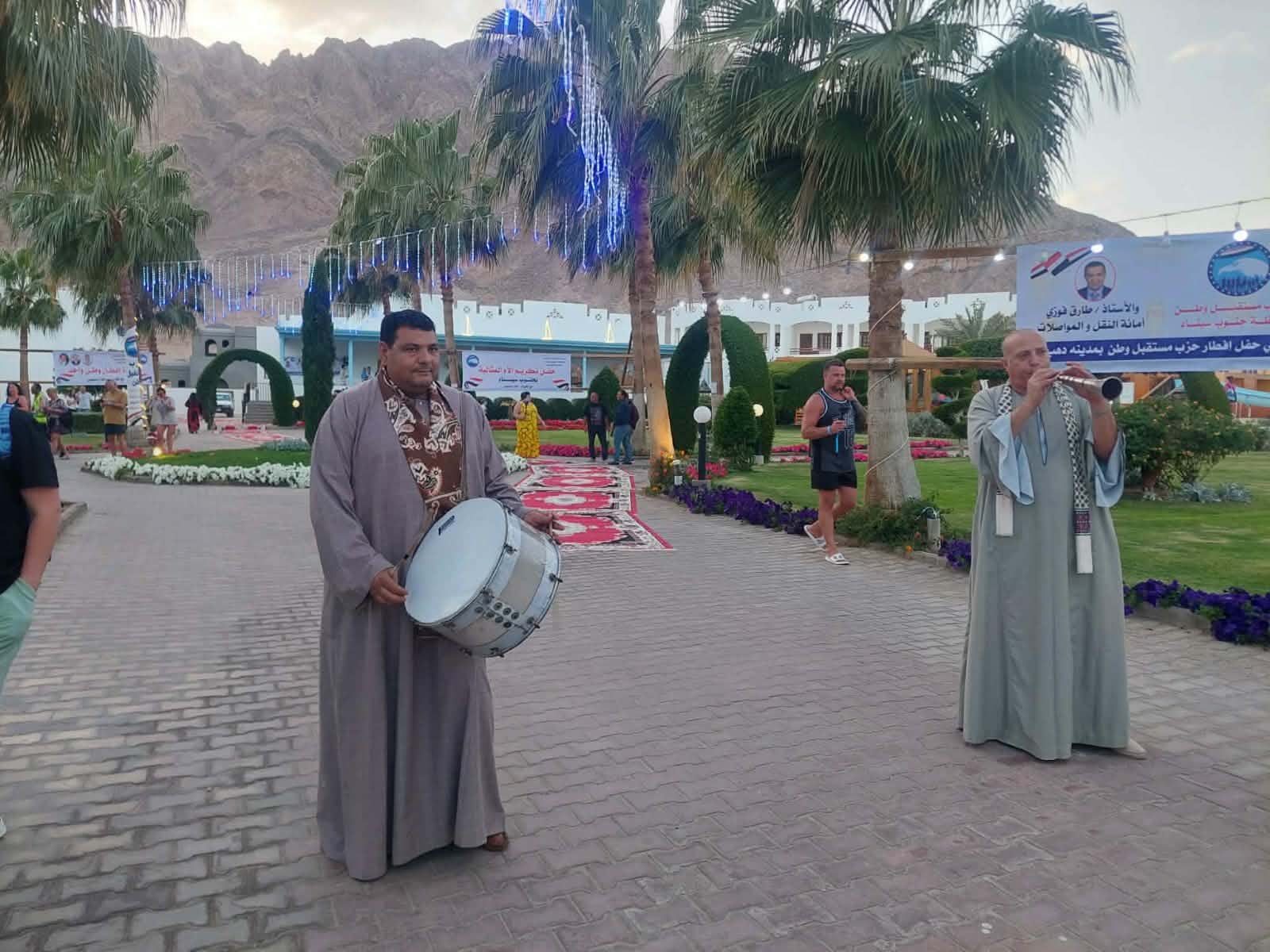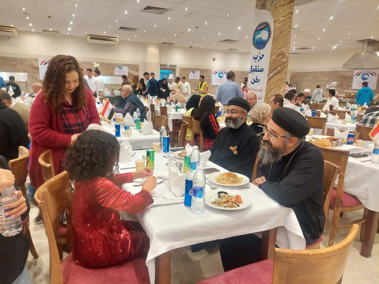 وجرى استقبال ضيوف المائدة من أهالي المدينة ورموز رجال الدين وقيادات حزب مستقبل وطن بالطبل والمزمار البلدي، إضافة إلى التنورة، احتفالا بالوحدة الوطنية التي ينعم بها أبناء المجتمع السيناوي.