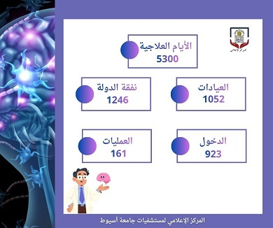 أعلن مستشفى الأمراض العصبية والنفسية وجراحة المخ والأعصاب بجامعة أسيوط عن استقباله (5300) حالة بالأيام العلاجية خلال شهر فبراير الماضي، تحت رعاية الدكتور أحمد المنشاوي رئيس جامعة أسيوط،و الدكتور علاء عطية عميد كلية الطب ورئيس مجلس إدارة المستشفيات الجامعية، و الدكتور طارق راجح مدير المستشفى.