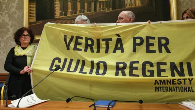 واختفى ريجيني، 28 عاما، وهو في طريقه لمقابلة أحد أصدقائه يوم 25 يناير / كانون الثاني الماضي، وعثر على جثته مشوهة وعليها آثار تعذيب في حفرة في القاهرة في الثالث من فبراير / شباط.