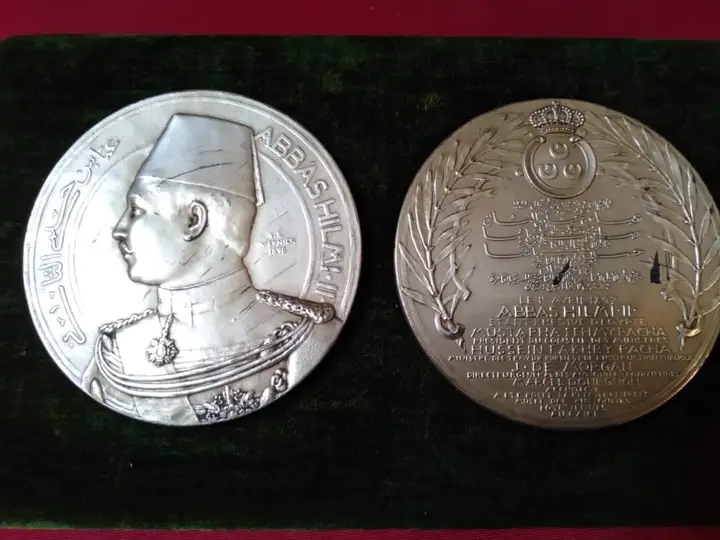 وتضم القطع المعروضة مجرفة حجر الأساس ومطرقة والميدالية التذكارية التي حفر عليها اسم الخديو عباس حلمي الثاني، التي تم تصميمها وصنعها خصيصاً لتخليد حدث وضع حجر الأساس، بالإضافة إلى الريشة ودواة الحبر التي تم التوقيع بهما لتخليد هذا الحدث الهام.