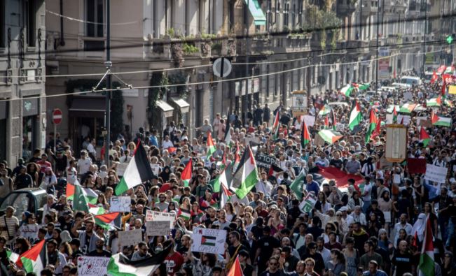 شهدت مدينة ميلانو الإيطالية، السبت، مظاهرة حاشدة شارك فيها نحو 15 ألف شخص طالبوا بوقف الإبادة الجماعية التي ترتكبها إسرائيل في غزة.