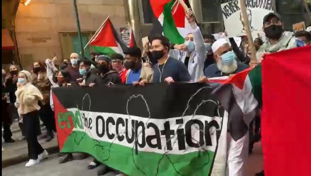 وخرج الآلاف من أبناء الجالية الفلسطينية في الولايات المتحدة، وأبناء الجالية العربية والإسلامية ونشطاء السلام، في مسيرتين حاشدتين جابتا الشوارع والأحياء في مدينتي نيويورك وواشنطن، تنديدا بالعدوان الإسرائيلي الذي يتعرض له الشعب الفسلطيني، لاسيما في مدينة القدس المحتلة وقطاع غزة.