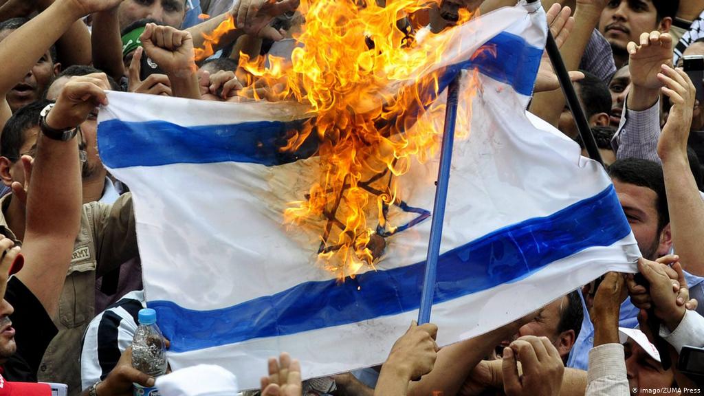 وتم إحراق أعلام إسرائيلية قبالة معبدين يهوديين في مدينتي مونستر وبون بولاية شمال الراين-ويستفاليا الألمانية ليلة الثلاثاء/الأربعاء الماضية.