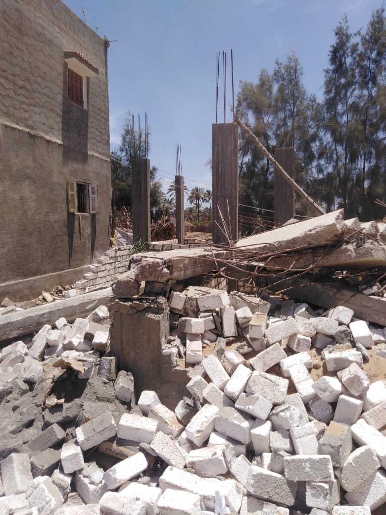 وإزالة حالة تعد على الأرض الزراعية بمساحة 60 مترا، عبارة عن خرسانات بنطاق قرية ابوالشقاف بالابقعين بحوش عيسى، وفك شدة خشبية بدون ترخيص لسقف دور أول علوى وإزالة سلم مخالف بمنزل بقرية دمشلى بكوم حمادة.