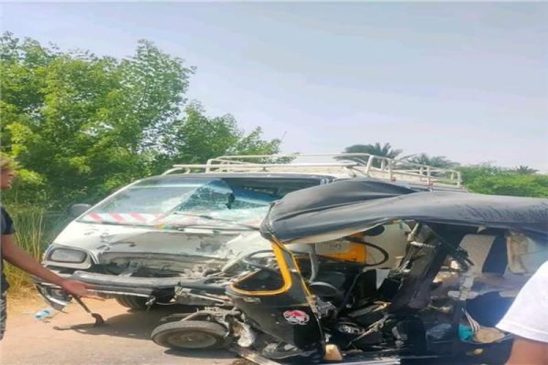 لقي شخص مصرعه، بينما أصيب اثنان آخران؛ إثر حادث تصادم سيارة ميكروباص بمركبة توكتوك في منطقة الصف بمحافظة الجيزة.
