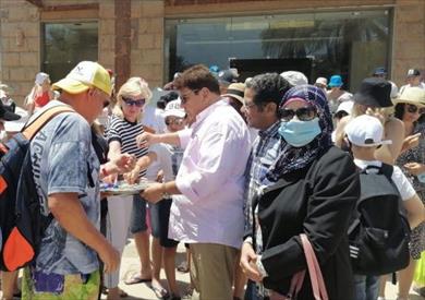 أشار إلى تقديم الورود والهدايا التذكارية للزائرين وسط حفاوة وترحاب معتاد من أهل الأقصر، في خطوة تبشر بانتعاشة سياحية بعد توالي الرحلات من روسيا التي كانت تصدر لمصر نحو مليوني ونصف المليون سائح سنويا.