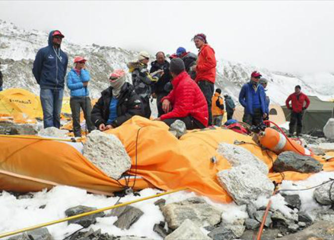 وبعد قضاء الليلة في كوخ جبلي انتاب المتسلقون القلق من مسار النزول الثلجي المنحدر.
