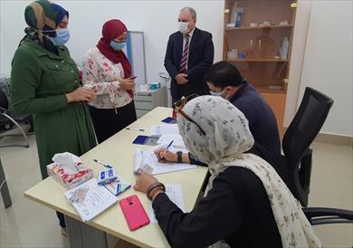 تفقد الدكتور محمد شكر ندا، رئيس جامعة بنى سويف التكنولوجية، إجراءات تلقي لقاح فيرس كورونا لأعضاء هيئة التدريس والعاملين بالجامعة، بالتعاون مع مديرية الصحة ببنى سويف.
