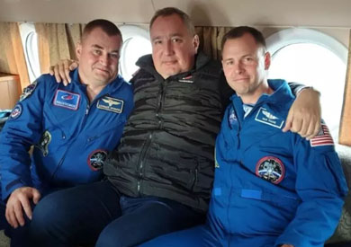 ونشر روجوزين صورة لنفسه محيطا بذراعيه رائدي الفضاء الأمريكي نيك هيج والروسي أليكسي أوفشينين.