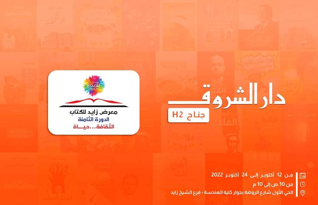تشارك دار الشروق في معرض زايد للكتاب 2022، بأحدث إصدارات الدار من الكتب الفكرية والعلمية والروايات، مع العديد من العروض والمفاجآت الأخرى المختلفة والمميزة للزوار.