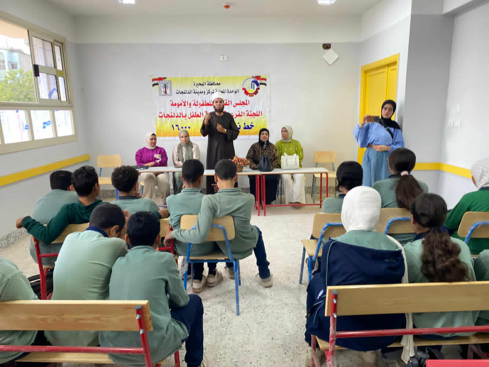 وتم تنظيم ندوة تثقيفية بمدرسة بني الدلنجات التجريبية للغات، للتعريف بقانون الطفل، والتوعية بخط نجدة الطفل (16000)، وذلك بالتنسيق مع الوحدة المحلية لمركز ومدينة الدلنجات.