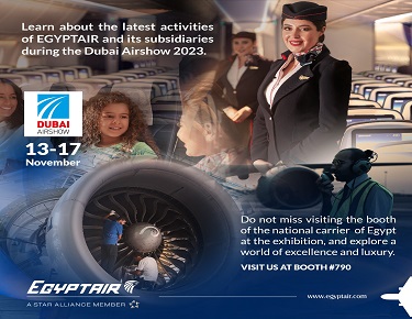 وتشارك الشركة القابضة لمصر للطيران وشركاتها التابعة بجناح متميز في معرض دبي للطيران 2023 يضم الصيانة والتدريب والخدمات الأرضية.