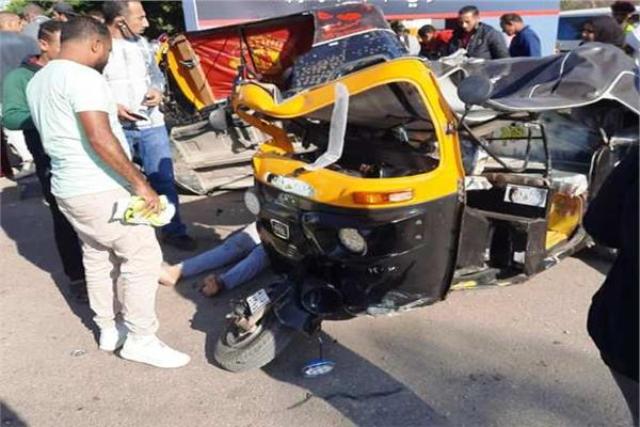 أصيب 6 أشخاص إثر تصادم سيارة أجرة و"توكتوك" في الدقهلية على طريق الستاموني أمام قرية السماحية الكبرى.