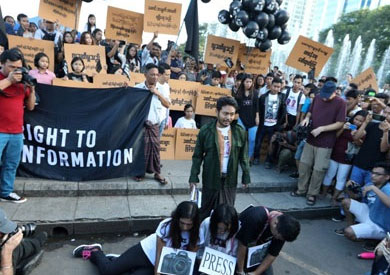 احتشد عدد كبير من أصدقاء وأفراد عائلتي الصحفيين اللذين حكم عليهما بالسجن لمدة 7 سنوات في ميانمار، في تظاهرة سلمية للمطالبة بالإفراج عنهما.