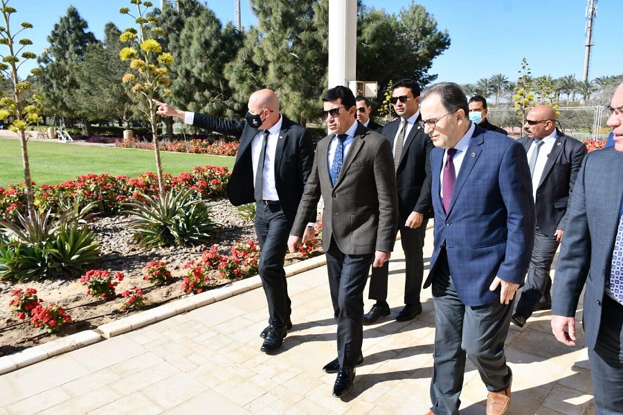 مثنيا على عمق العلاقات والتعاون المستمر الذي يربط وزارة الشباب والرياضة بالجامعة الأمريكية في العديد من المجالات.