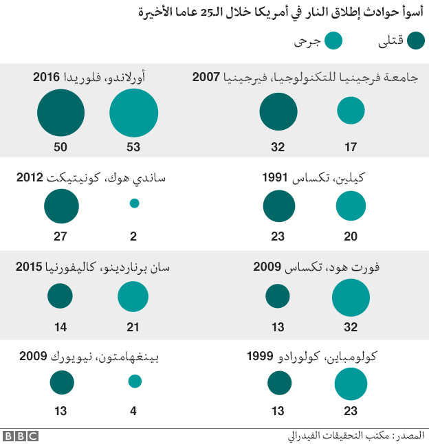وقد قتل عمر متين 50 شخصا وأصاب 53 آخرين بجروح في أكثر حادثة إطلاق نار دموية في تاريخ الولايات المتحدة المعاصر، قبل أن تقتله الشرطة.