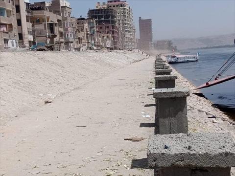 وأشار إلى أن الأعمال تتضمن تدبيش جانب النهر بداية من مرسى العبارات وصولاً إلى مدرسة مصطفي كامل الإعدادية، وإنشاء ممشى بطول ٦٠٠متر، حيث وصلت نسبة التنفيذ 70%، بالإضافة إلى إنشاء سور فاصل بالحجر الفرعوني.