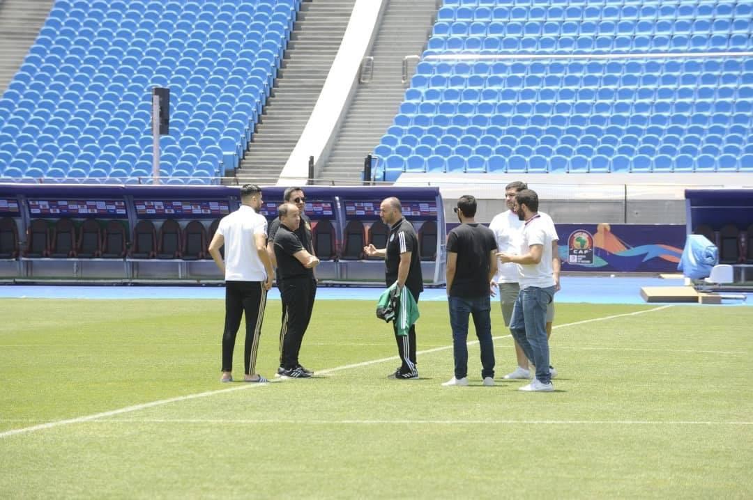 عاين جمال بلماضي المدير الفني لمنتخب الجزائر أرضية ملعب ستاد القاهرة استعدادا لمواجهة نيجيريا في إطار نصف نهائي كأس أمم إفريقيا.