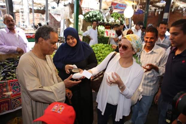 وزعت وزيرة البيئة، على هامش زيارتها لمحافظة البحر الأحمر، الأكياس البديلة "صديقة البيئة" بسوق منطقة الدهار بمدينة الغردقة.