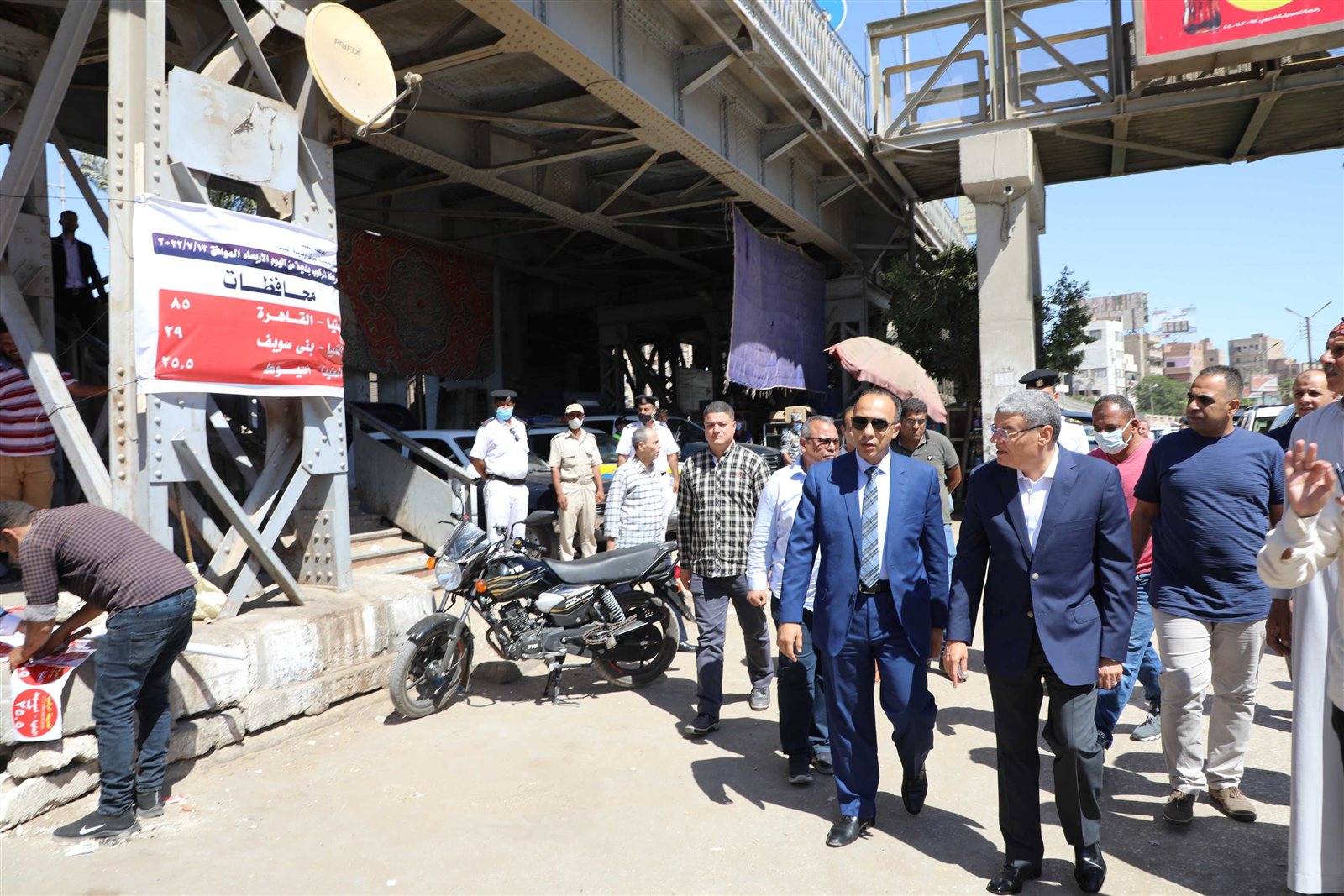 رافق المحافظ، الدكتور محمود يوسف وكيل وزارة التموين بالمنيا، الدكتور محمد حلمى رئيس مدينة المنيا، والعميد وليد العاطون مدير مرور المنيا، وأحمد فؤاد مدير إدارة المواقف بالمحافظة ومباحث المرور والتموين والجهات المعنية.
