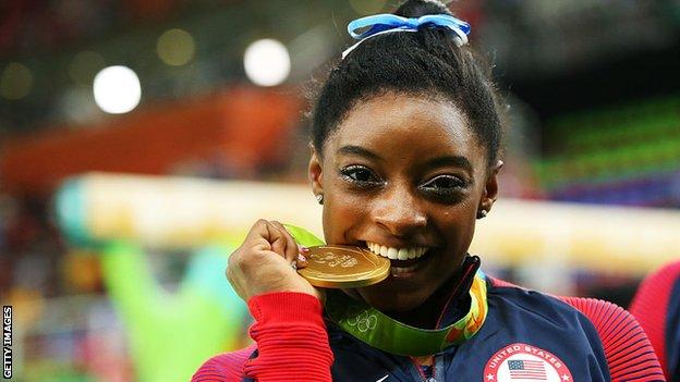 وقد تحقق بايلز خماسية غير مسبوقة في ريو، حيث ستشارك في 3 مسابقات في الفردي هي حصان القفز الاحد والعقلة والحركات الارضية الاثنين.